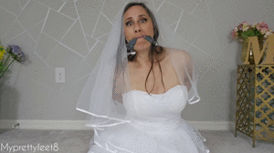 You (the camera) and I have been tied up and gagged by another couple because we wanted the same wedding venue. I struggle to get my hands free, and when I take the cleave gag out of my mouth I tell you how exciting this whole situation is. I was turned on by the couple making us watch as they tied up the other couple that wanted the venue. It was hot! I see you're turned on too, so before we get out of here, I give you a handjob. I jerk you off without the gag in for a little bit, and also put the gag back in for extra spicy fun. I keep checking to make sure we don't get caught.